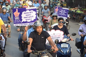 भारत निर्वाचन आयोग के निर्देशानुसार स्वीप कार्यक्रम के तहत मतदाताओं को जागरूक करने के लिए समय-समय पर अनेक गतिविधियों का आयोजन किया जा रहा है। कलेक्टर डॉ. गौरव सिंह और जिला प्रशासन की टीम कलेक्ट्रेट से मतदाता जागरूकता की तख्ती लेकर बाइक से निकली। रैली राइडर्स पीछे एक साथी तख्ती लेकर निकले जिसपर वोट की ताकत, पहचानो मतदाता, मजबूत प्रजातंत्र से इसका नाता, हमारा आह्वान, करें मतदान, बनें महान जैसे कई संदेश मतदाता जागरूक के दिए गए।तेलीबांधा तालाब में कलेक्टर ने बाइक रैली में शामिल राइडर्स के अलावा गणमान्य नागरिकों को मतदाता जागरूकता की शपथ दिलाई। मतदाता जागरूकता के तहत ए आई जी श्री संजय शर्मा की टीम के द्वारा जुंबा और नुक्कड़ नाटक के जरिए मतदाता जागरूकता का आयोजन भी किया गया। इस अवसर पर नगर निगम आयुक्त श्री अबिनाश मिश्रा, जिला पंचायत सीईओ श्री विश्वदीप सहित अन्य अधिकारी, कर्मचारी व गणमान्य नागरिक उपस्थित थे।