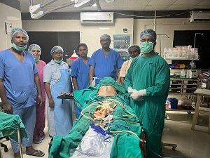 दुर्ग । जिला चिकित्सालय दुर्ग में मरीज शंकर लाल देवांगन उम्र 53 वर्ष निवासी मरोदा भिलाई दुर्ग विगत पांच दिनों से गंभीर पेट दर्द की तकलीफ से जुझ रहा था। मरीज आस-पास के क्लीनिक में ईलाज करवा रहा था फिर भी तकलीफ बढ़ती जा रही थी। अंत में जिला अस्पताल दुर्ग में गंभीर अवस्था में 21 अप्रैल 2024 को लाया गया। मरीज को प्राथमिक उपचार करने के पश्चात विशेषज्ञों को पता लगा कि मरीज की आंत फट गया है। सर्जरी विशेषज्ञ एच.ओ.डी. डॉ. सरिता मिंज ने तुरंत ऑपरेशन करने का फैसला किया तथा आपातकालीन में रात्री को मरीज को ऑपरेशन थियेटर में लिया गया। ओ.टी. इंचार्ज तथा एनेस्थेसिया एच.ओ.डी के द्वारा मरीज को बेहोशी दी गई तथा सर्जरी विशेषज्ञ डॉ. सरिता मिंज एवं डॉ. कामेन्द्र ठाकुर के द्वारा तीन घंटे तक जटिल सर्जरी सफलतापूर्वक की गयी। ऑपरेशन के पश्चात डॉ. अनिल विवेक सिन्हा के मार्गदर्शन में आई.सी.यू. में ईलाज किया गया। ओ.टी. टीम में रमेश महिलांगे, शैनी, मयूरी, नजरीन, शिबेनदानी का महत्वपूर्ण योगदान रहा। साथ ही ब्लड बैंक में भी तुरंत रक्त व्यवस्था करवाने के लिये डॉ. प्रवीण अग्रवाल का योगदान रहा। मरीज अभी खतरे से बाहर है तथा जिला चिकित्सालय के सिविल सर्जन डॉ. ए.के. साहू, आर.एम.ओ. डॉ. अखिलेश यादव एवं डॉ. ओ.पी. वर्मा अस्पताल सलाहकार के द्वारा इस सफलता पर आभार व्यक्त किया गया है।