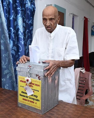 होम वोटिंग की सुविधा से 105 वर्षीय कन्हैया राम ने किया मतदान