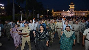 ग्वालियर। लोकसभा चुनाव में अधिक से अधिक मतदाताओं की भागीदारी के उद्देश्य को लेकर शहर के हृदय स्थल महाराज बाड़ा से विशाल मशाल यात्रा निकली। रविवार की सांध्य बेला में कलेक्टर एवं जिला निर्वाचन अधिकारी रुचिका चौहान और पुलिस अधीक्षक धर्मवीर सिंह के नेतृत्व में हाथों में मशाल थामकर शहर के एक दर्जन से अधिक महाविद्यालयों के विद्यार्थी, केन्द्रीय रिजर्व पुलिस बल व जिला पुलिस बल के जवान, प्रबुद्ध व जागरूक नागरिक एवं अधिकारी-कर्मचारी आगे बढ़े। मतदाता जागरूकता अभियान के तहत निकली यह मशाल यात्रा महाराज बाड़ा से शुरू हुई और सराफा बाजार, गश्त का ताजिया, डीडवाना ओली, राम मंदिर, पाटनकर बाजार व दौलतगंज होकर गुजरी। मशाल यात्रा के माध्यम से यहाँ के व्यवसाइयों, रहवासियों एवं खरीददारी करने आए शहरवासियों को मतदान करने के लिये प्रेरित किया गया। जिले में स्वीप (सुव्यवस्थित मतदाता शिक्षा एवं निर्वाचक सहभागिता) के तहत आयोजित हो रहे मतदाता जागरूकता कार्यक्रमों की श्रृंखला में रविवार की शाम यह मशाल यात्रा निकाली गई। पूरी मशाल यात्रा के दौरान कलेक्टर एवं जिला निर्वाचन अधिकारी रुचिका चौहान एवं पुलिस अधीक्षक धर्मवीर सिंह पैदल चले।