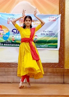 सबसे पहले कु. दीक्षा गुप्ता ने शानदार कथक नृत्य प्रस्तुत कर खूब वाहवाही लूटी। उसके बाद कु. परिणीता साहू और श्वेताभ साहू ने छायो रंग केसरिया… गीत पर सधे हुए अन्दाज में युगल नृत्य पेश किया। कु. वेदांशी साहू ने है कथा संग्राम की…गीत पर सुन्दर नृत्य प्रदर्शित कर सबको ताली बजाने पर मजबूर कर दिया।