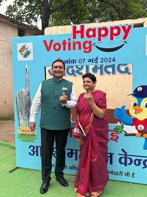 रायपुर। लोकसभा निर्वाचन के तहत रायपुर संभागायुक्त डॉ संजय अलंग ने आज सपत्नीक पुरैना मतदान केंद्र पहुँच कर वोट डाला। उन्होंने पुरैना प्राथमिक शाला भवन में स्थापित मतदान केंद्र में सुबह सबसे पहले पहुँच अपने मताधिकार का प्रयोग किया । इस दौरान डॉ अलंग की पत्नी श्रीमती सुमिता अलंग ने भी वोट मतदान किया। संभागायुक्त ने मतदान के बाद सेल्फ़ीज़ोन में सपत्नीक फोटो भी ली। डॉ अलंग ने सभी मतदाताओं से मतदान की अपील भी की है। उन्होंने मतदान केंद्र पर लोगों से बात की और केंद्र पर उपलब्ध सुविधाओं के बारे में जानकारी ली।