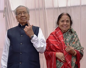 रायपुर। राज्यपाल विश्वभूषण हरिचंदन एवं प्रथम महिला श्रीमती सुप्रभा हरिचंदन ने मंगलवार को सिहावा भवन सिविल लाईन्स स्थित आदर्श मतदान केंद्र 170 पहुंच कर लोकसभा आम निर्वाचन 2024 के लिए मताधिकार का प्रयोग किया। राज्यपाल हरिचंदन ने प्रदेश के सभी मतदाताओं से संविधान द्वारा प्रदत्त मताधिकार का प्रयोग करने की अपील की। उन्होंने कहा कि सभी नागरिकों का कर्तव्य है कि वे मताधिकार का प्रयोग करके लोकतंत्र को सशक्त बनाने में अपनी भूमिका निभाए। मतदान के बाद राज्यपाल ने सेल्फी जोन में फोटो भी खिंचाई।