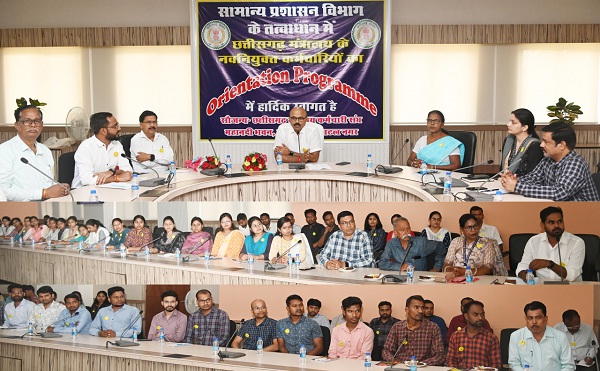 रायपुर। मंत्रालय महानदी भवन में छत्तीसगढ़ मंत्रालयीन सेवा में नवनियुक्त कर्मचारियों के लिए ओरियेंटेशन (प्रशिक्षण) कार्यक्रम का आयोजन सामान्य प्रशासन विभाग के तत्वावधान में किया गया। सामान्य प्रशासन विभाग के सचिव श्री अन्बलगन पी ने नवनियुक्त कर्मचारियों को मंत्रालयीन कार्य के संबंध महत्वपूर्ण जानकारी दी। उन्होंने कार्यक्रम को सम्बोधित करते हुये कहा कि अधिकारी कर्मचारी अपने अच्छे कार्य से प्रगति कर सकते है। उन्होंने कार्य पूरी मेहनत, लगन एवं समपर्ण की भावना से करने के लिए कर्मचारियों को प्रेरित किया। सामान्य प्रशासन विभाग के सचिव ने कर्मचारियों को प्रशिक्षण के महत्व के संबंध में भी बताया। कार्यक्रम के दौरान मंत्रालयीन अधिकारी एवं कर्मचारियों ने भी अपने अनुभव के बारे में बताया। कार्यक्रम में मंत्रालयीन कर्मचारी संघ का सहयोग सहरानीय रहा।