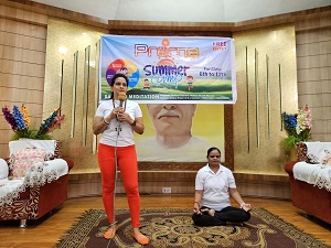 योग शिक्षिका ज्योति साहू प्रजापिता ब्रह्माकुमारी ईश्वरीय विश्व विद्यालय द्वारा विश्व शान्ति भवन चौबे कालोनी में आयोजित समर कैम्प में जीवन में योगासनों का महत्व विषय पर बोल रही थीं। उन्होंने बच्चों को विभिन्न योगासनों से होने वाले लाभ से परिचित कराया।