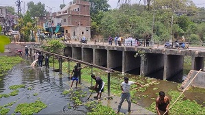 उमरिया। आयुक्त शहडोल संभाग शहडोल बी एस जामोद एवं कलेक्टर धरणेन्द्र कुमार जैन द्वारा स्वच्छता पखवाड़ा चलाने हेतु निर्देश दिए गए गए है । जिसके परिपालन में नगरीय क्षेत्र उमरिया अंतर्गत जिला मुख्यालय उमरिया की जीवन दायिनी उमरार नदी के खलेसर घाट में सम्पूर्ण नदी के साफ सफाई का अभियान चलाया गया । मुख्य नगर पालिका अधिकारी ने बताया कि उमरार नदी में साफ सफाई का यह अभियान निरंतर जारी रहेगा।