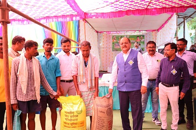 इसी क्रम में गंगालूर सहकारी समिति में गंगालूर क्षेत्र के अत्यंत सुदूरवर्ती गांव पालनार, बुरजी, पेद्दाकोरमा, रेड्डी, हिरोली जैसे विभिन्न गांवों के ग्रामीणों और किसानों को उन्नत किस्म के धान का बीज, डीएपी, यूरिया सहित प्रति किसान 28 सौ रुपए के खाद-बीज एवं भूमि सुधार हेतु प्रत्येक किसान को एक हजार रुपए का वितरण कलेक्टर श्री अनुराग पाण्डेय द्वारा किया गया। इस दौरान मत्स्य विभाग द्वारा हितग्राहियों को जाल वितरण किया गया।
