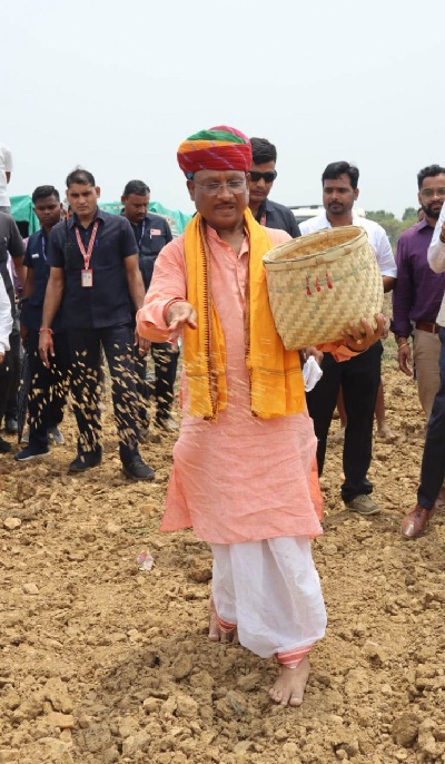 मुख्यमंत्री श्री साय बने किसान: खेतों में बीज छिड़काव कर खेती-किसानी का शुभारंभ