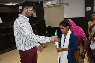 दृष्टिबाधित दिव्यांग पार्वती धु्रव को स्मार्ट केन डिवाइस समाज कल्याण विभाग द्वारा प्रदान किया। उन्होंने पार्वती का पृथक राशन कार्ड नही होने पर खाद्य अधिकारी को तलब कर तत्काल नया राशन कार्ड बनवाकर दिया। अलग राशन कार्ड बन जाने से अब पार्वती को ज्यादा खाद्यान्न मिल सकेगा। स्मार्ट केन डिवाइस सेंसरयुक्त स्टिक है जो सामने कोई बड़ी वस्तु आने पर कंपन व आवाज देता है जिससे हाथ में लेकर चलने वाला व्यक्ति सचेत हो जाता है। इस स्टिक से दृष्टिबाधित व्यक्तियों को चलने-फिरने में काफी सहूलियत होती है। कलेक्टर ने दिव्यांग पार्वती से पढ़ाई क़े बारे में पूछताछ की। पार्वती ने बताया कि वह 28 वर्ष की है लेकिन स्कूल नहीं गई है। पढ़ना लिखना नहीं आता। इस पर कलेक्टर ने कहा कि दृष्टिबाधितों की पढ़ाई ब्रेल लिपि क़े माध्यम से हो सकती है। पढ़ने क़े इच्छुक हो तो प्रशासन पूरा सहयोग करेगा। उन्होंने समाज कल्याण विभाग क़े अधिकारी को पार्वती की पढ़ाई क़े लिए आवश्यक व्यवस्था करने क़े निर्देश दिए। वहीं पेंशन क़े लिए भी कार्यवाही करने क़े निर्देश दिए। उल्लेखनीय है कि कलेक्टर श्री सोनी ने जरुरतमंदो को पात्रतानुसार तत्काल सहायता उपलब्ध कराने क़े निर्देश सभी विभाग प्रमुखों को दिए हैं। इसके साथ ही योजना क़े तहत अधिक से अधिक हितग्राहियो को लाभान्वित करने क़े भी निर्देश दिए हैं।