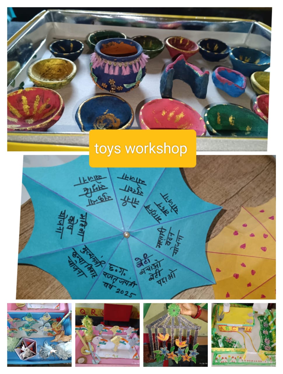 जिले के आंगनबाड़ी केंद्रों को स्पेशल लर्निंग एवं आनंदपूर्ण स्थल बनाने के उद्देश्य से ECCE गतिविधियों के तहत टॉय मेकिंग वर्कशॉप भी आयोजित की गई। इसमें कार्यकर्ताओं, सहायिकाओं, पालकों तथा स्थानीय शिल्पकारों ने मिलकर अनुपयोगी वस्तुओं का उपयोग कर खिलौने एवं शिक्षण सामग्री तैयार की। सबसे अच्छे खिलौने एवं शिक्षण सामग्री बनाने वालों को प्रोत्साहन स्वरूप पुरस्कार प्रदान किए गए। इन सभी कार्यक्रमों का उद्देश्य बच्चों, महिलाओं एवं समाज को स्वास्थ्य, शिक्षा और पोषण के प्रति जागरूक करना है, ताकि जिले के प्रत्येक नागरिक तक राज्य शासन की योजनाओं का लाभ पहुँच सके।