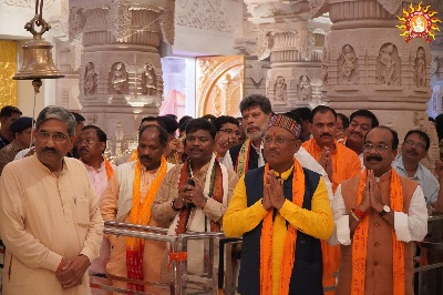 मुख्यमंत्री श्री साय ने इस अवसर पर प्रभु श्री राम से छत्तीसगढ़ के लोगों की सुख समृद्धि की कामना की। इस मौके पर मुख्यमंत्री ने कहा कि हम लोग पूरी कैबिनेट के साथ श्री रामलला के दर्शन के लिए आज अयोध्या धाम आए। भगवान श्रीराम हमारे छत्तीसगढ़ के भांजे हैं। भांचा राम के दर्शन के लिए हम लोग बहुत उत्सुक थे। भगवान श्रीराम के आशीर्वाद से वो शुभ घड़ी आ गई है जब हम लोगों को अयोध्या धाम में रामलला के दर्शन का सौभाग्य मिला।