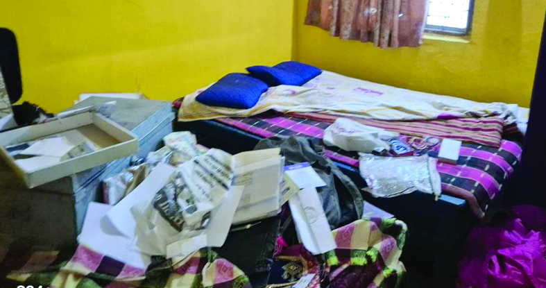 मिली जानकारी के अनुसार कर्मचारी कॉलोनी निवासी सत्यवती दुबे रिश्तेदार के यहां गई थीं। जब वह घर लौटी तो दरवाजा का ताला टूटा हुआ था। घर की आलमारी का भी लॉक टूटा मिला आलमीरा के अंदर रखे 10 हजार रुपये कैश, 27 ग्राम सोने का हार, स्मार्ट टीवी समेत अन्य सामान गायब था। वही पूरे कमरे में कपड़े, समेत अन्य सामान बिखरा पड़ा था। सूचना पर पुलिस की टीम जांच करने पहुंची। साथ ही डॉग स्कॉड की टीम भी पहुंची। 200 मीटर दूर जाने के बाद डाग वापस लौट गया। पिथौरा थाना प्रभारी उमेश वर्मा ने बताया कि मकान मालिक बीते 1 महीने से घर से बाहर थे। घर सूना होने का फायदा उठाकर चोरों ने चोरी की वारदात को अंजाम दिया गया। आसपास के घरों में लगे सीसीटीवी फुटेज की मदद ली जा रही है, ताकि चोरों का सुराग मिल सके।