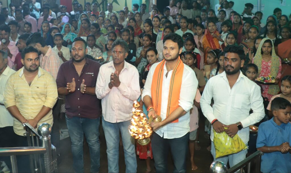 महासमुंद। नवरात्र के पंचमी के अवसर पर नगर पालिका अध्यक्ष निखिलकांत साहू नगर के विभिन्न वार्डों में विराजित माँ दुर्गा के आशीर्वाद लेने पहुँचे। उन्होंने पंडालों में विराजित माँ दुर्गा के दर्शन पूजा कर नगर व क्षेत्र की खुशहाली की कामना की। इस दौरान उन्होंने संध्या पूजा आरती में शामिल होकर सभी की मनोकामना पूरी करने माता से प्रार्थना की। श्री साहू ने दुर्गा पंडालों में पहुँचकर सामुदायिक एकता को बढ़ावा देने दुर्गा समिति के युवाओं का उत्साह वर्धन किया। पंडालों में पहुँचते ही दुर्गा समिति के युवाओं ने उनका श्रीफल, तिलक लगाकर स्वागत किया। अनेक स्थानों पर उन्होंने जस सेवा समितियों के साथ माता सेवा में सहभागी बने। इस दौरान उनके साथ कार्यकर्ता व वार्डों के दुर्गा समितियों के युवा कार्यकर्ता मौजूद रहे।