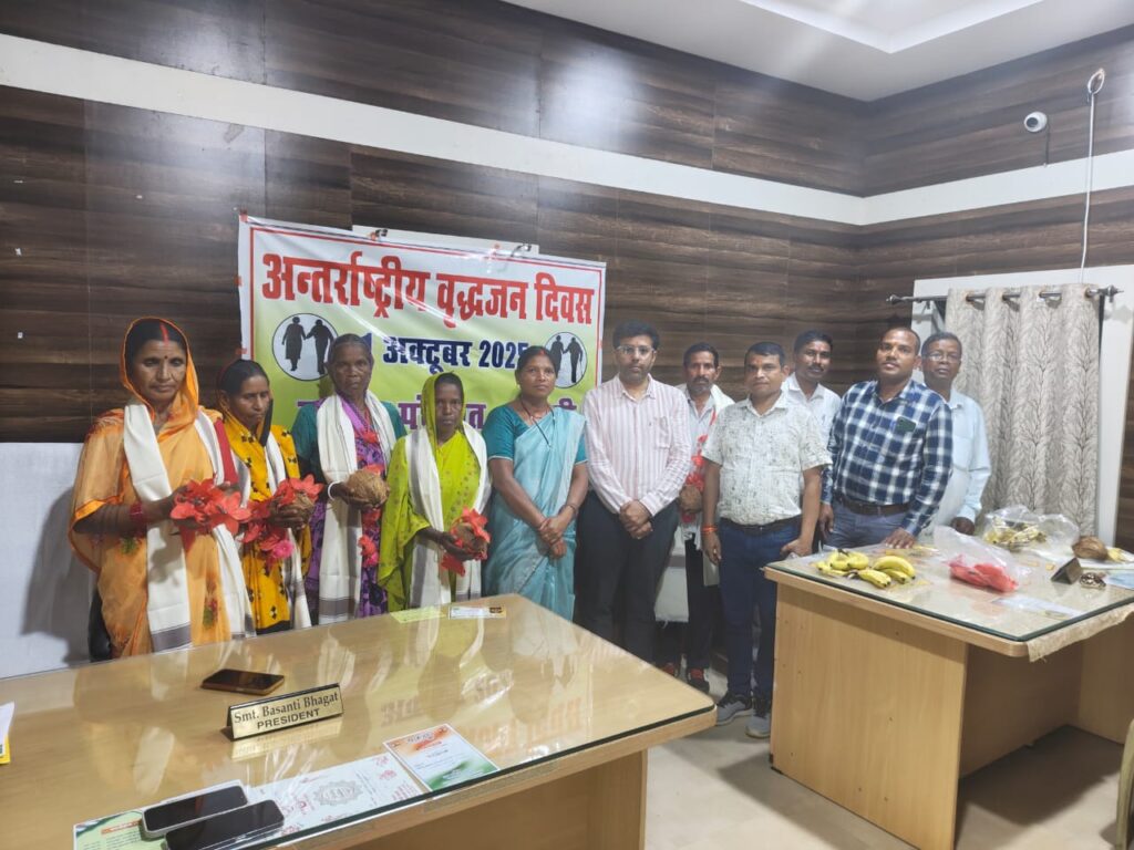 बलरामपुर, 01 अक्टूबर 2025/ अंतर्राष्ट्रीय वृद्धजन दिवस के अवसर पर जिला मुख्यालय सहित सभी विकासखण्डों में वृद्धजन सम्मान समारोह का आयोजन किया गया। जिसमें वृद्धजनों को शाल एवं श्रीफल देकर सम्मानित किया गया। जिला मुख्यालय बलरामपुर के जनपद पंचायत सभाकक्ष में जिला स्तरीय वृद्धजन सम्मान समारोह का आयोजन किया गया। कार्यक्रम की शुरुआत छत्तीसगढ़ महतारी के चित्र पर माल्यार्पण और दीप प्रज्वलन से की गई।
