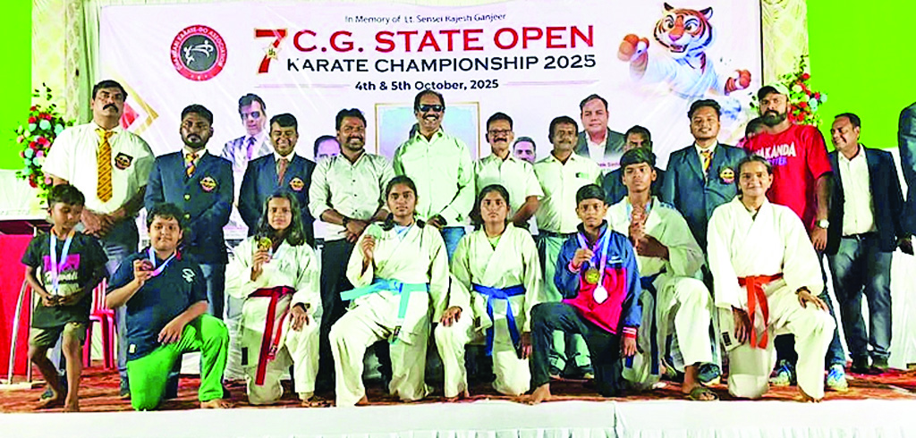 महासमुंद। सेंसाई राजेश गंजीर की स्मृति में दो दिवसीय सातवीं राज्य स्तरीय ओपन कराते चैंपियनशिप प्रतियोगिता आमातालाब रोड स्थित इंडोर स्टेडियम धमतरी में आयोजित की गई । इस प्रतियोगिता में धमतरी, रायपुर, महासमुंद, राजनादगांव, गरियाबंद, बिलासपुर, बस्तर, बेमेतरा व अन्य जिलों के लगभग 350 कराते खिलाड़ियों ने अपने कौशल का प्रदर्शन किया, जिसमें महासमुंद के खिलाड़ियों ने भी शानदार प्रदर्शन करते हुए 2 स्वर्ण ,3 रजत और 2 कांस्य पदक प्राप्त किया। कोच विकास दास वैष्णव और प्रवीण कुमार मलिक के नेतृत्व में काता तनमय शर्मा स्वर्ण पदक, कुमिते अक्षधा चंद्राकर स्वर्ण पदक, आयान वर्मा रजत पदक, देवश्री साहू रजत पदक, तनमय शर्मा रजत पदक, अरनव रंजन सिन्हा कांस्य पदक, वेंकटेश साहू ने कांस्य पदक जीता। महासमुंद जिला कराते संघ के अध्यक्ष प्रफुल्ल दुबे, उपाध्यक्ष संदीप चौधरी, सचिव आनंद कुमार वैष्णव, कोषाध्यक्ष मनीष श्रीवास्तव, भोज विश्वकर्मा ने हर्ष जताया है।