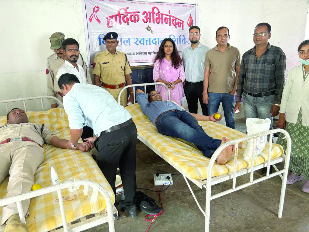 महासमुंद। जिला जेल महासमुंद में छत्तीसगढ़ रजत महोत्सव वर्ष 2025-26 आयोजन के अवसर पर गुरुवार को रक्त दान शिविर का आयोजन किया गया। जिसमें डॉ. ओमप्रकाश, डॉ प्रतिति पांडे इंटर्न चिकित्सक, ओमप्रकाश पटेल लैब टेक्नोलॉजिस्ट, कु. कुसुम साहू स्टॉफ नर्स, सुनील साहू, देव कुमार काउंसलर ने सेवा दी। शिविर में सहा जेल अधीक्षक मुकेश प्रसाद कुशवाहा, चिकित्साधिकारी डॉ. महेन्द्र चौधरी, लक्ष्मीनारायण सारंग, श्रवण कुमार साहू, प्रवीण कुमार, अनिल कुशवाहा, संतूराम बघेल, तोषण लाल कुर्रे, अजीत खाण्डेकर आदि ने स्वैच्छिक रक्तदान किया।