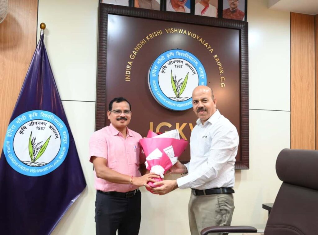 रायपुर, 13 अक्टूबर 2025/इंदिरा गांधी कृषि विश्वविद्यालय के नवनियुक्त कुलसचिव कपिलदेव दीपक ने आज पदभार ग्रहण किया. उन्होंने प्रभारी कुलसचिव डॉ सी पी खरे से कुलसचिव पद का प्रभार लिया. पदभार ग्रहण करने के उपरांत दीपक ने कृषि विश्वविद्यालय के कुलपति डॉ गिरीश चंदेल से सौजन्य मुलाकात की. डॉ चंदेल ने दीपक को उनके सफल कार्यकाल हेतु शुभकामनाएं दी. कपिल देव दीपक ने विश्वविद्यालय के अधिकारियों से संवाद कर विश्वविद्यालय की कार्यप्रणाली एवं गतिविधियों के बारे में जानकारी प्राप्त की. इस अवसर पर उप कुलसचिव डॉ यमन देवांगन, डॉ श्रीकांत चितले, डॉ विजय सोनी सहित विश्वविद्यालय प्रशासन के वरिष्ठ अधिकारी उपस्थित थे. उल्लेखनीय है कि कपिल देव दीपक मूलतः कृषि विभाग में संयुक्त संचालक के पद पर पदस्थ है.