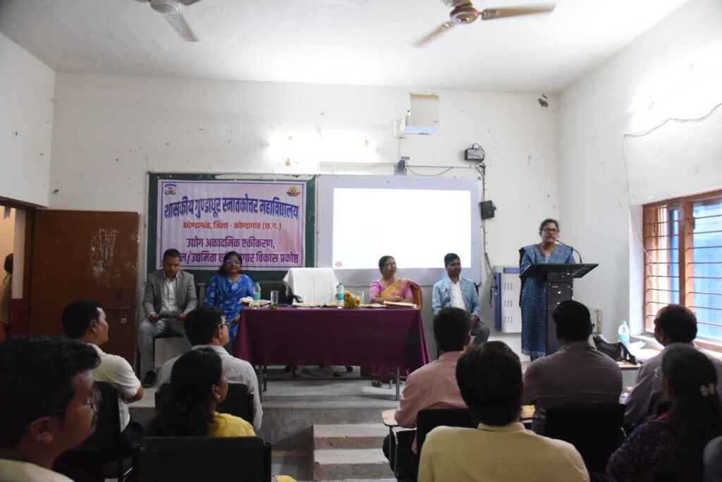 इसके पश्चात् मुख्य प्रवक्ता डॉ. देवेन्द्र मरावी, शहीद महेन्द्र कर्मा विश्वविद्यालय बस्तर द्वारा विद्यार्थियों को स्टार्टअप एवं जमीनी स्तर के नवप्रवर्तकों के बीच नवाचार उद्यमिता और समावेशी भागीदारी के लिए प्रोत्साहित किया गया एवं छत्तीसगढ़ आइडियाथान में छात्र छात्राओं को पंजीयन की प्रक्रिया से अवगत करवाया गया। साथ ही अधिक से अधिक छात्रों को पंजीयन करने हेतु प्रोत्साहित किया गया। इस अवसर पर शहीद महेन्द्र कर्मा विश्वविद्यालय बस्तर डॉ. नीरज कुमार वर्मा, प्रभारी महाप्रबंधक जिला व्यापार एवं उद्योग केन्द्र कोण्डागांव श्रीमती कुसुमलता नेताम, शासकीय गुण्डापुर स्नातकोत्तर महाविद्यालय कोण्डागांव सहायक प्राध्यापक डॉ. किरण नुरेटी एवं प्राचार्य सहित छात्र-छात्राएं एवं शिक्षक गण उपस्थित रहे।