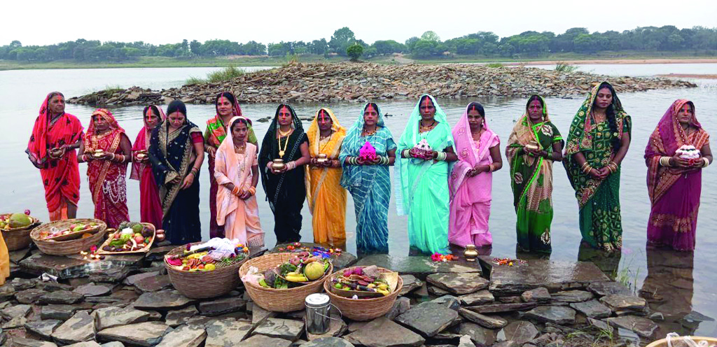 महिलाओं ने उगते सूरज को अर्घ्य देकर की सुख, समद्धि की कामना