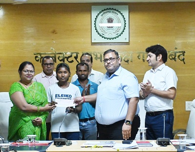 गरियाबंद । शासकीय कन्या हायर सेकण्डरी स्कूल छुरा में पढ़ने वाली 17 वर्षीय बालिका कुमकुम ध्रुव ने जिले का नाम रौशन किया है। उन्होंने 67वें राष्ट्रीय स्कूल खेल प्रतियोगिता में भाग लेते हुए वेटलिफ्टिंग खेल में दुसरा स्थान प्राप्त किया है। कुमकुम ने अंडर 17 ग्रुप के अंतर्गत वेटलिफ्टिंग के 49 किलोग्राम इवेन्ट में प्रतियोगिता में परचम लहराया है। कुमकुम की इस उपलब्धि पर शासन द्वारा उन्हें प्रोत्साहन राशि प्रदान किया गया है। आज कलेक्टर श्री दीपक अग्रवाल ने कुमकुम को 15 हजार रूपये की चेक राशि सौंप कर उन्हें प्रतियोगिता में उत्कृष्ट प्रदर्शन के लिए बधाई दी। उन्होंने राष्ट्रीय स्तर के प्रतियोगिता में दुसरा स्थान हासिल करने पर खुशी जताते हुए भविष्य में भी ऐसे ही उमदा प्रदर्शन करने के लिए प्रोत्साहित किया। उन्होंने कहा कि कुमकुम की मेहनत और सफलता से जिले के अन्य छात्रों को भी प्रेरणा मिलेगी। साथ ही विद्यार्थीगण पढ़ाई के अलावा खेल क्षेत्र में भी अच्छा प्रदर्शन करने के लिए प्रोत्साहित होंगे।