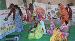 पालक चौपाल में शिशुवती माताओं, किशोरी बालिकाओं को पौष्टिक भोजन और स्वच्छता के संबंध में दी जा रही जानकारी