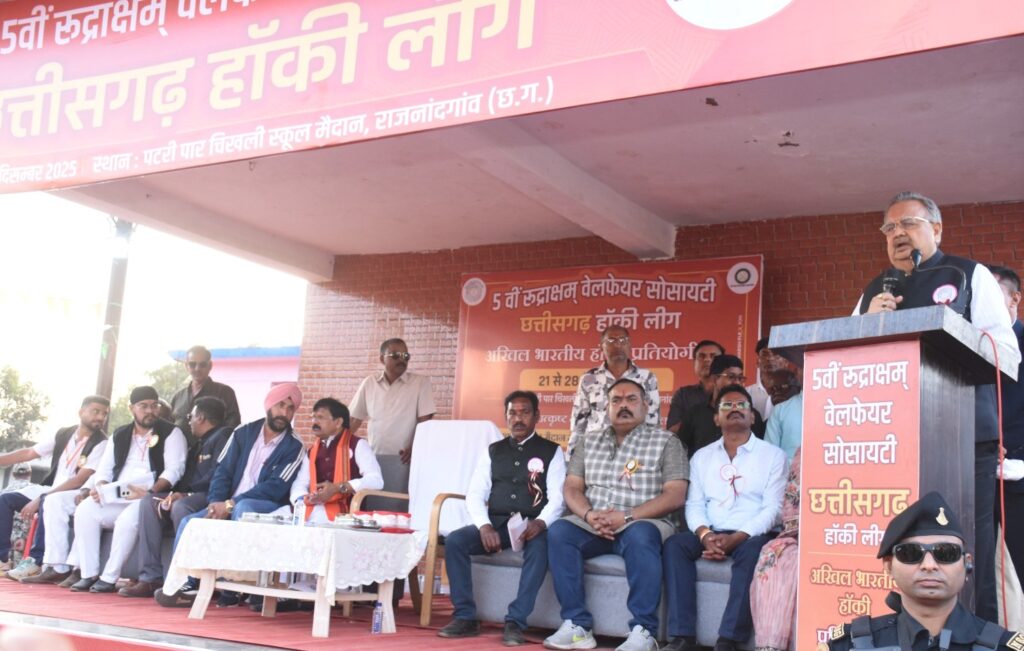 राजनांदगांव 21 दिसम्बर 2025। विधानसभा अध्यक्ष डॉ. रमन सिंह ने रूद्राक्षम् वेलफेयर सोसायटी द्वारा पटरी पार चिखली स्कूल मैदान राजनांदगांव में आयोजित 5वीं छत्तीसगढ़ हॉकी लीग अखिल भारतीय हॉकी प्रतियोगिता का शुभारंभ किया। 5वीं छत्तीसगढ़ हॉकी लीग अखिल भारतीय हॉकी प्रतियोगिता 21 दिसम्बर से 28 दिसम्बर 2025 तक आयोजित की जाएगी। विधानसभा अध्यक्ष डॉ. रमन सिंह ने हॉकी खिलाडिय़ों के लिए हॉकी किट रखने के लिए 5 लाख रूपए तथा जिम सामग्री क्रय करने के लिए 5 लाख रूपए की घोषणा की। विधानसभा अध्यक्ष डॉ. सिंह ने कहा कि हॉकी का खेल राजनांदगांव की खेल चेतना, सामाजिक सहभागिता और युवा ऊर्जा के सजीव उत्सव है। उन्होंने रूद्राक्षम वेलफेयर सोसायटी द्वारा निरंतर 5 वर्षों तक सफलतापूर्वक प्रतियोगिता आयोजन करने के लिए हार्दिक बधाई दी। छत्तीसगढ़ हॉकी लीग अखिल भारतीय हॉकी प्रतियोगिता को अधिक भव्य, अनुशासित, उद्देश्यपूर्ण बनाने की दिशा में अपनी एक विशेष पहचान बनाई है। उन्होंने कहा कि राजनांदगांव की एक विशिष्ट सांस्कृतिक पहचान, हमारी खेल परंपरा और हॉकी का गौरवशाली स्थान रहा है।