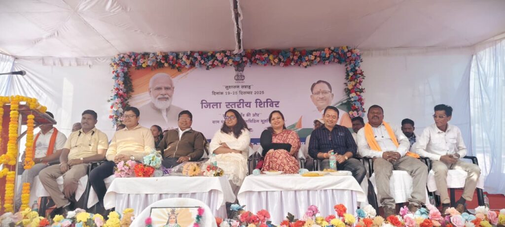 मोहला 22 दिसंबर 2025। शासन की विभिन्न योजनाओं और सेवाओं का लाभ अंतिम व्यक्ति तक पहुंचाने तथा जन सामान्य की समस्याओं का त्वरित निराकरण करने के उद्देश्य से आज विकास खंड मोहला के ग्राम माडिंग पीडिंग में प्रशासन गांव की ओर का जिला स्तरीय शिविर का आयोजन किया गया। इस अवसर पर जिला पंचायत अध्यक्ष श्रीमती नम्रता सिंह, सरपंच माडिंग पीडिंग श्रीमती सिया देवी, अमित श्रीवास्तव, मनोज नेताम, गुरूदयाल साहू, कलेक्टर श्रीमती तुलिका प्रजापति, सीईओ जिला पंचायत श्रीमती भारती चन्द्राकर, अपर कलेक्टर जीआर मरकाम, एसडीएम मोहला हेमेन्द्र भुआर्य, सीईओ जनपद प्रांजल प्रजापित सहित स्थानीय जनप्रतिनिधि एवं विभागीय अधिकारी-कर्मचारी उपस्थित रहें।