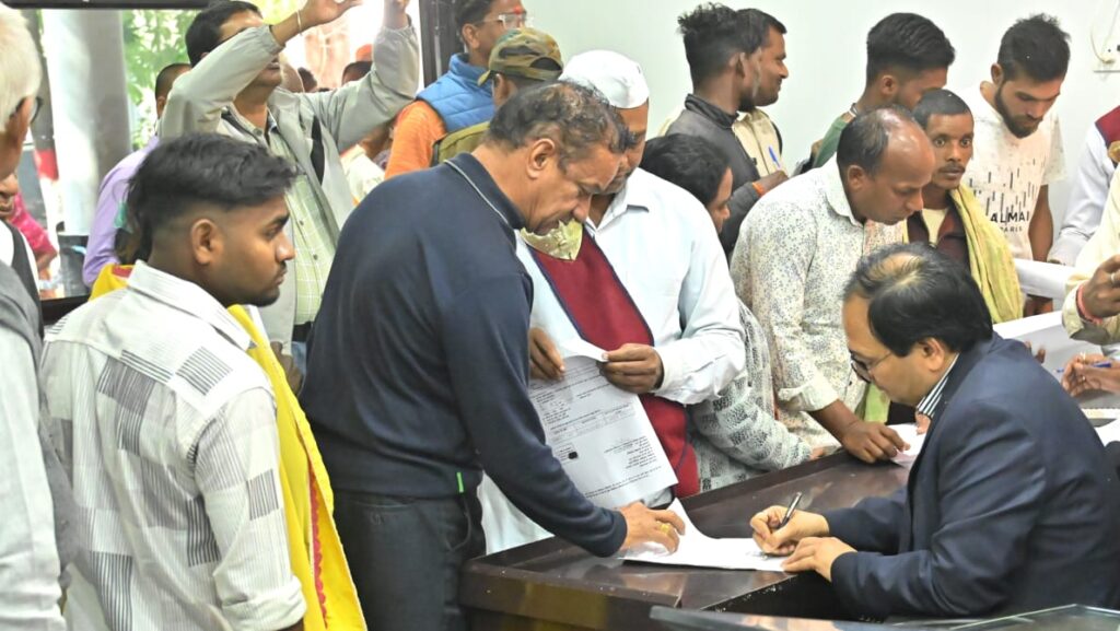 बिलासपुर, 23 दिसम्बर 2025/कलेक्टर संजय अग्रवाल ने साप्ताहिक जनदर्शन में आज दूर-दराज से पहुंचे ग्रामीणों की फरियाद सुनी। उन्होंने एक-एक कर प्रत्येक व्यक्ति से मुलाकात कर उनका आवेदन लिया और आवश्यक कार्रवाई के लिए अधिकारियों को निर्देशित किया। लोगों ने जनदर्शन में व्यक्तिगत एवं सामुदायिक हित से जुड़े विषयों को लेकर जिला प्रशासन का ध्यान आकृष्ट करते हुए आवेदन दिया। नगर निगम कमिश्नर प्रकाश कुमार सर्वे और एडीएम शिवकुमार बनर्जी ने लोगों की समस्याओं को सुना।