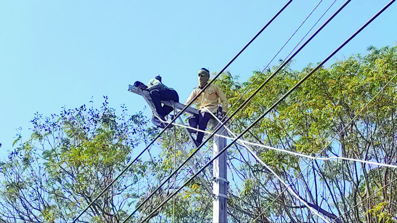विद्युत विभाग श्रमिकों का जान खतरे में डालकर ले रहें हैं कम, बिना किसी सुरक्षा उपकरण पोल पर चढ़कर बिछा रहें तार