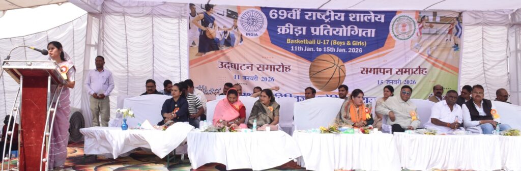 राजनांदगांव 15 जनवरी 2026। स्कूल गेम्स फेडरेशन ऑफ इंडिया द्वारा संचालित एवं स्कूल शिक्षा विभाग द्वारा आयोजित 69वीं राष्ट्रीय शालेय क्रीड़ा प्रतियोगिता के समापन समारोह का आयोजन दिग्विजय स्टेडियम में किया गया। प्रतियोगिता में देश के 27 राज्य एवं 9 शैक्षणिक संस्थान सहित कुल 36 बास्केटबॉल बालक व बालिका 17 वर्ष वर्ग की टीमें शामिल हुई। प्रतियोगिता में 429 बालक एवं 402 बालिका तथा 175 कोच कुल 1006 प्रतिभागी हिस्सा लिया। प्रतियोगिता के समापन समारोह के अवसर पर जिला पंचायत अध्यक्ष श्रीमती किरण वैष्णव ने कहा कि जीवन में खेल का बहुत महत्व है और जीवन का हर क्षण खेल है। इसका निष्कर्ष यह है कि हम जब तक किसी भी खेल में संघर्ष नहीं करेंगे तो हमें सफलता नहीं मिलेगी। जीवन में संघर्ष करते रहने पर एक दिन सफलता अवश्य मिलती है। आप सभी प्रतिभावान खिलाड़ी जिन्होंने यह जीत हासिल की है, उन्हें हार्दिक बधाई। ऐसे खिलाड़ी जो जीत नहीं पाए है, वे निराश नहीं हो इससे सीखने का अवसर मिलता है। सभी आज यहां से प्रेरणा लेकर जा रहे है और आगे भी मेहनत करते रहे।