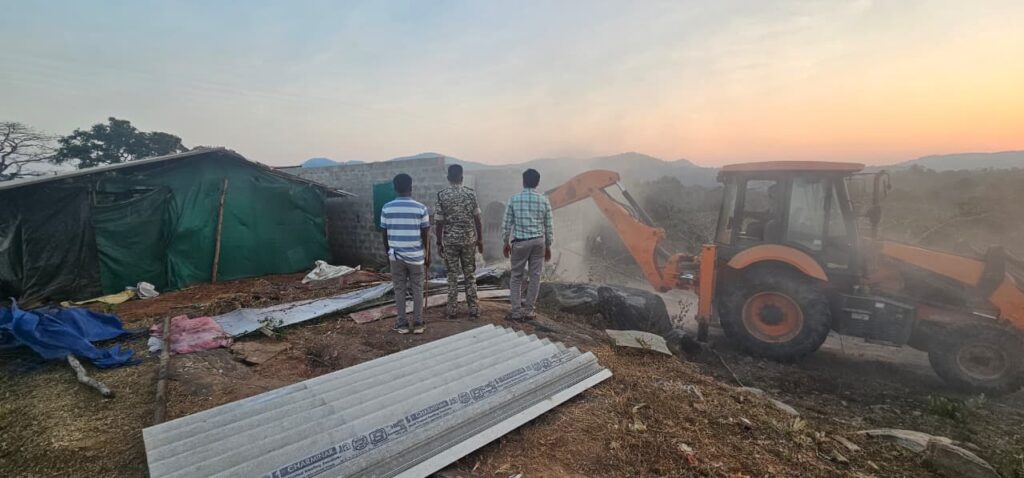 बीजापुर 16 जनवरी 2026- आज नगर पालिका परिषद बीजापुर अंतर्गत नया बस स्टैंड के पीछे चट्टान पारा से लगे क्षेत्र में वन मद की भूमि में अवैध रूप से किये गए अतिक्रमण पर जिला प्रशासन द्वारा कार्यवाही किया गया। उल्लेखनीय है कि पूर्व में ही इस क्षेत्र में अतिक्रमण हटाने की कार्यवाही तीन बार विगत वर्षों में जिला प्रशासन के द्वारा किया गया था। आज की कार्यवाही के पूर्व नगर पालिका परिषद बीजापुर द्वारा अतिक्रमणकारियों को तीन बार नोटिस जारी का अवैध अतिक्रमण हटाने हेतु दिया गया था किन्तु अतिक्रामकों के द्वारा अतिक्रमण स्वयं नहीं हटाया गया। इस अतिक्रमण को हटाने के लिए नगर के बाबा चिकटराज समिति द्वारा विगत दिनों आवेदन जिला प्रशासन को दिया गया था।