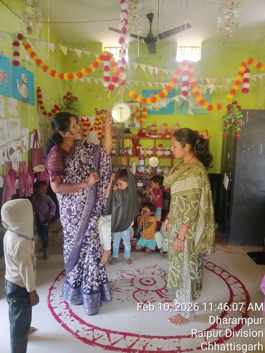 बच्चों एवं गर्भवती महिलाओं का वजन एवं स्वास्थ्य परीक्षण किया गया। वजन के साथ-साथ बच्चों की लंबाई, पोषण स्तर एवं सामान्य स्वास्थ्य स्थिति की भी जांच की गई। कुपोषित एवं अति कुपोषित बच्चों की पहचान कर उन्हें विशेष पोषण आहार, चिकित्सा सुविधा एवं निरंतर निगरानी से जोड़ने की प्रक्रिया प्रारंभ की गई। कार्यक्रम के दौरान पालकों को पोषण संबंधी चार्ट, आहार तालिका एवं स्वास्थ्य संबंधी जानकारी भी प्रदान की गई। साथ ही स्वच्छता, हाथ धोने की आदत, साफ पानी का उपयोग एवं नियमित टीकाकरण के लिए जागरूक किया गया। आंगनबाड़ी कार्यकर्ताओं ने वजन त्यौहार के माध्यम से सभी पालकों अपने 0 से 6 वर्ष आयु के बच्चों एवं गर्भवती महिलाओं को नजदीकी आंगनबाड़ी केन्द्रों में अनिवार्य रूप से लेकर आएं। वजन जांच के बाद पोषण रिपोर्ट एवं सलाह को गंभीरता से अपनाएं। इसके साथ ही आयरन, कैल्शियम, विटामिन युक्त आहार, हरी सब्जियां, फल, दूध एवं दालों को दैनिक भोजन में शामिल करने की सलाह दी गई है। गर्भवती महिलाओं को नियमित स्वास्थ्य जांच एवं चिकित्सकीय परामर्श लेने की भी अपील की गई। इस अवसर पर सेक्टर सुपरवाइजर हीरा ध्रुव, कार्यकर्ता सरोज चंद्राकर, त्रिवेणी निषाद, देवला दीवान, पदमा नागेश, लक्ष्मी यादव, सुनीता खड़िया, अन्नु खड़िया, जानकी निषाद, पीली कमार, टिमेश्वरी चंद्राकर, प्रीति ध्रुव, उर्मिला नागेश, फिरकी ध्रुव, विद्या ध्रुव, लोकेश्वरी खड़िया, रेशमी पटेल, दुर्गा ध्रुव, सोनम खड़िया, कविता यादव, जान्हवी यादव, पलक ध्रुव आदि महिलाएं बड़ी संख्या में उपस्थित रहें।
