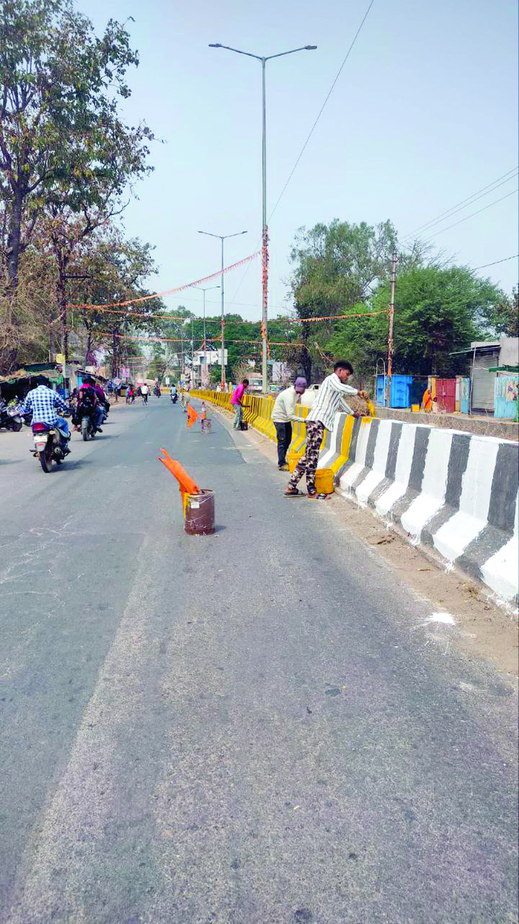 बिना साफ किए डिवाइडर को रंग-रोगन में गुणवत्ता और मानकों की अनदेखी!