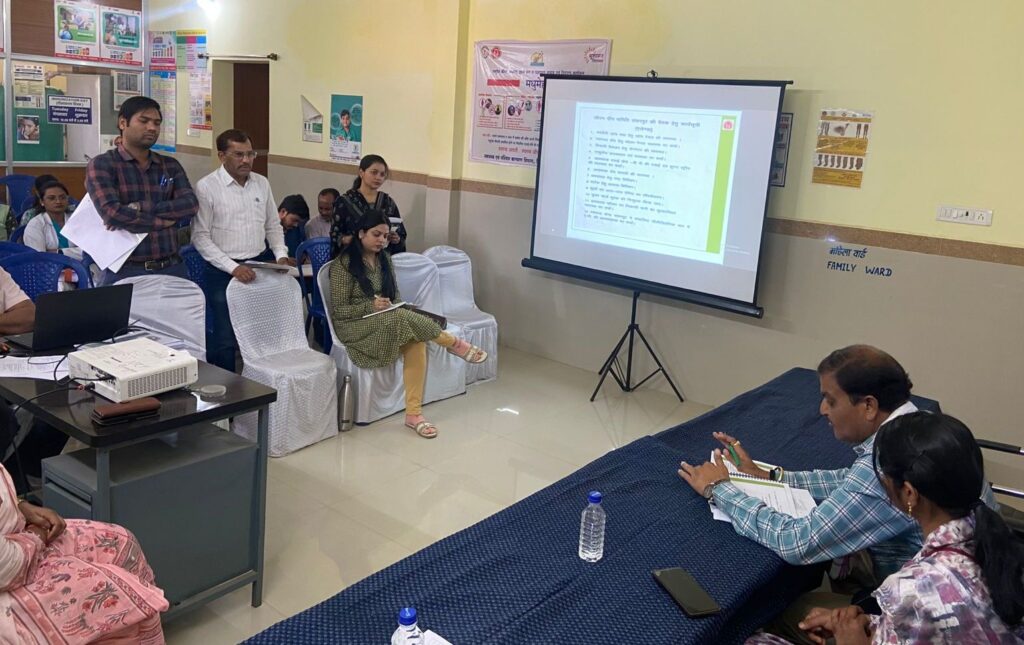 राजनांदगांव 27 फरवरी 2026। महापौर एवं अध्यक्ष जीवन दीप समिति मधुसूदन यादव की अध्यक्षता में शहरी प्राथमिक स्वास्थ्य केन्द्र मोतीपुर के सभाकक्ष में शहरी प्राथमिक स्वास्थ्य केन्द्र शंकरपुर, मोतीपुर, लखोली की साधारण सभा जीवन दीप समिति की बैठक आयोजित की गई। बैठक में जनसामान्य को बेहतर स्वास्थ्य सुविधा प्रदान करने, शिशुओं एवं वृद्धजनों को नि:शुल्क उपचार एवं जांच कराने, एनएनसी व पीएनसी की नि:शुल्क सेवाएं देने, मरीजों को आवश्यक दवाईयां उपलब्ध कराने, स्वास्थ्य केन्द्रों में स्वच्छ पेयजल सहित अन्य सुविधाएं उपलब्ध कराने के निर्देश दिए गए। बैठक में वार्ड क्रमांक 3 मोतीपुर के पार्षद कमलेश बंदे, वार्ड क्रमांक 10 शंकरपुर के पार्षद श्रीमती अपूर्वा श्रीवास्तव, वार्ड क्रमांक 29 लखोली के पार्षद श्रीमती गिरजा निर्मलकर, उप अभियंता नगर पालिक निगम राजनांदगांव सुश्री आयुषि सिंह, जिला प्रबंधक-शहरी डॉ. पूजा मेश्राम, अर्बन सुपर वाईजर केके शर्मा, शहरी प्राथमिक स्वास्थ्य केन्द्रों के प्रभारी चिकित्सा अधिकारी डॉ. सुषमा साहू, डॉ. शैलेश कुमार जोशी एवं डॉ. सतीश कुमार मेश्राम, स्टाफ नर्स, एएनएम, जेएसए, मितानिन एवं सहयोगी स्टाफ उपस्थित थे।