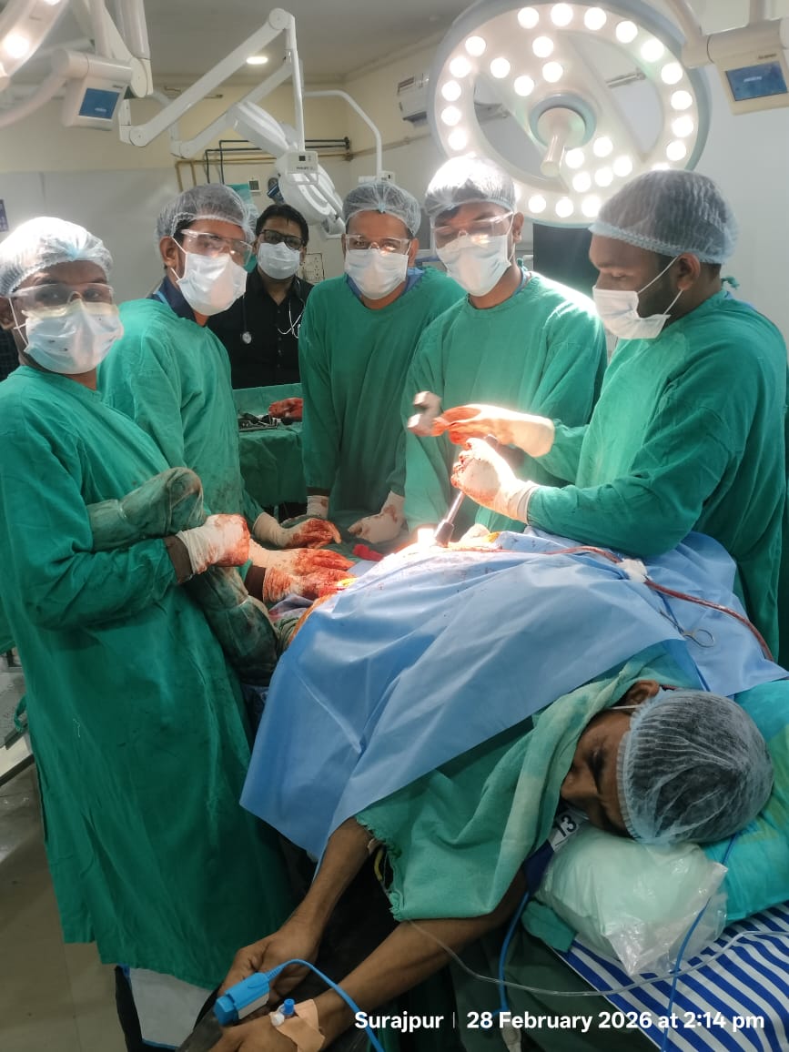 सूरजपुर/28 फरवरी 2026/ जिला चिकित्सालय सूरजपुर ने चिकित्सा के क्षेत्र में एक नया कीर्तिमान स्थापित किया है। अस्पताल के हड्डी रोग विभाग में पहली बार कूल्हे की हड्डी के प्रत्यारोपण (हिप रिप्लेसमेंट) का जटिल ऑपरेशन सफलतापूर्वक संपन्न किया गया। इस सर्जरी के साथ ही सूरजपुर जिले के मरीजों के लिए जिला अस्पताल अब एक स्वास्थ्य सेवा प्राप्त करने का एक बेहतर स्थान बन गया है। अब इस तरह के बड़े ऑपरेशन के लिए बाहर जाने की आवश्यकता नहीं होगी।