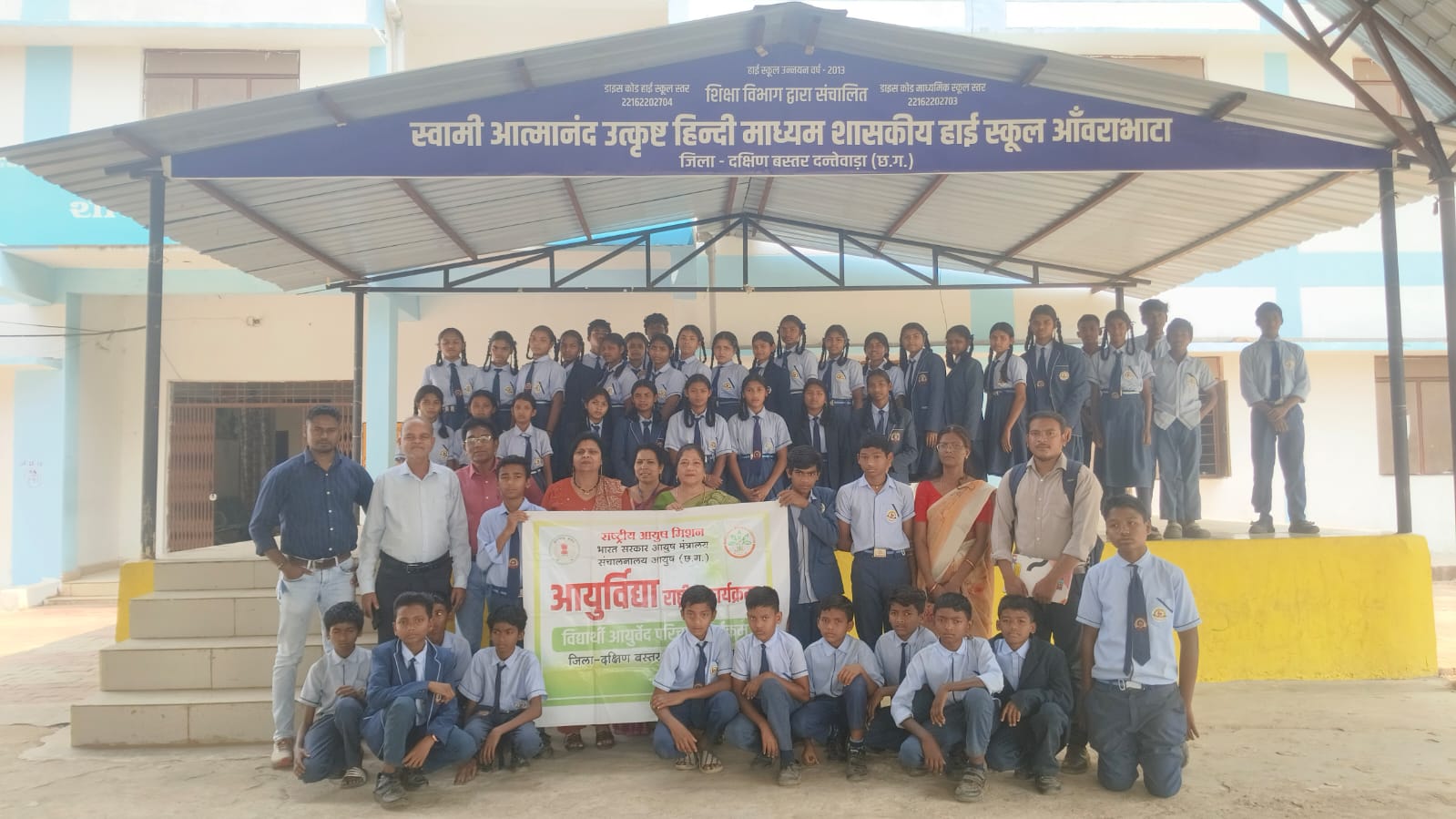 दंतेवाड़ा, 18 मार्च 2026। भारत सरकार आयुष मंत्रालय द्वारा संचालित राष्ट्रीय आयुष मिशन के तहत् संचालक आयुष विभाग छ.ग के निर्देशानुसार एवं जिला आयुष अधिकारी डॉ. जे. आर. नेताम के मार्गदर्शन में आज दिनांक 17 मार्च 2026 को शासकीय आत्मानन्द हायर सेकेण्डरी स्कूल आंवराभाटा में कार्यक्रम के नोडल अधिकारी डॉ. जगदम्बा पंडा आयुर्वेद विशेषज्ञ तथा डॉ. रविन्द्र सिंह आयुर्वेद चिकित्सक (आयुर्विद्या कार्यक्रम), डॉ. संतोष कुमार बर्मन (योग चिकित्सक) संयुक्त टीम द्वारा कक्षा 01 से 12 वीं तक लगभग 120 छात्र-छात्राओं का आयुर्विद्या कार्यक्रम के माध्यम से मनुष्य जीवन को निरोग रखने के बारे में विस्तारपूर्वक जानकारी दी गई। इसके अलावा आयुर्वेद चिकित्सा पद्धति में उपयोगी कुल 20 औषधीय गुणों से परिपूर्ण पौधों का ज्ञान छात्रों को कराया गया।