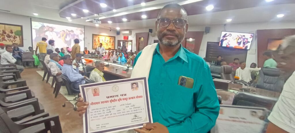 बिलासपुर, 25 मार्च 2026/पं. दीनदयाल उपाध्याय भूमिहीन मजदूर कल्याण योजना के अंतर्गत बिलासपुर जिले मंय बड़ी संख्या में भूमिहीन मजदूरों को राहत मिली है। योजना के तहत जिले के 39 हजार से अधिक पात्र हितग्राहियों के बैंक खातों में डायरेक्ट बेनिफिट ट्रांसफर (डीबीटी) के माध्यम से प्रति हितग्राही 10 हजार रुपए की सहायता राशि अंतरित की गई। मुख्यमंत्री विष्णु देव साय द्वारा बलौदाबाजार जिले से इस राशि का अंतरण किया गया। जिला कार्यालय के मंथन सभाकक्ष में आयोजित कार्यक्रम में उप मुख्यमंत्री अरूण साव ने हितग्राहियों को प्रमाण पत्र सौंपे।