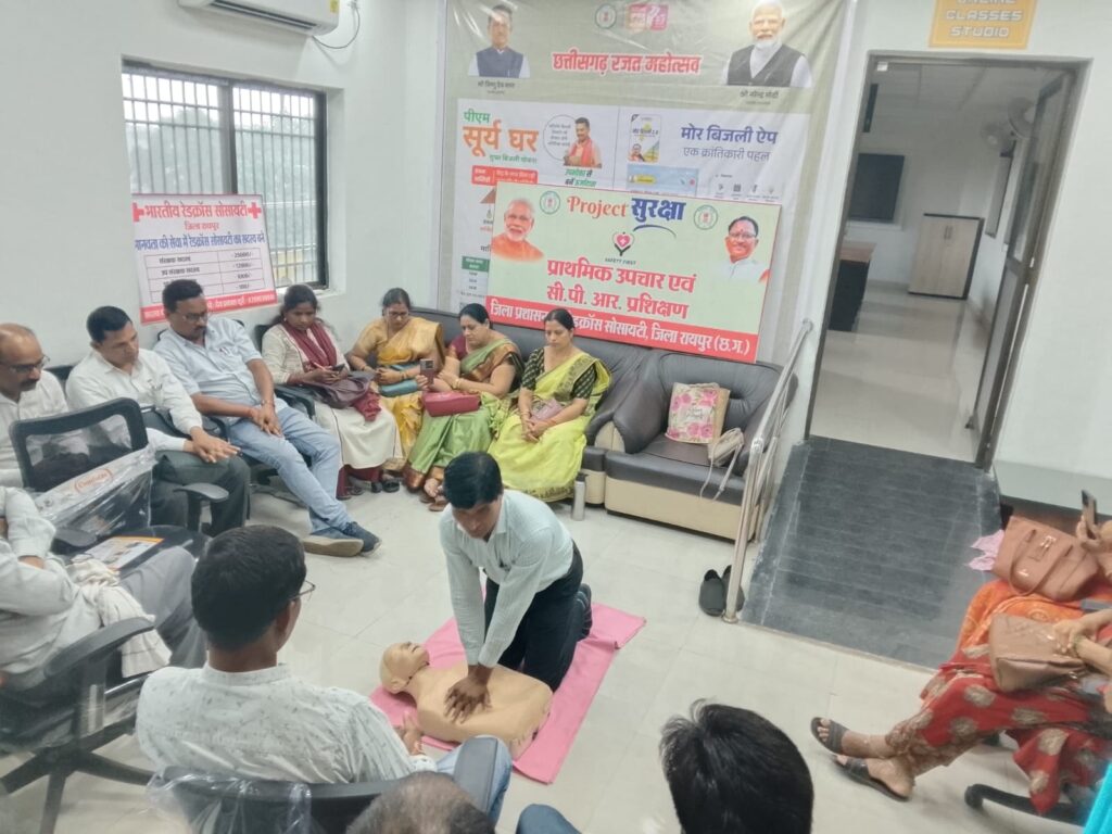 रेडक्रॉस सोसाइटी, जिला शाखा रायपुर के सहायक प्रबंधक देवप्रकाश कुर्रे ने प्रशिक्षण का संचालन करते हुए आपातकालीन परिस्थितियों में जीवन रक्षक तकनीकों की महत्ता को समझाया। उन्होंने सीपीआर की विस्तृत विधि का व्यवहारिक प्रदर्शन किया। साथ ही यह बताया कि कैसे सांस रुकने या हृदय गति बंद होने जैसी गंभीर स्थितियों में समय रहते सही तरीके से दी गई सहायता किसी व्यक्ति की जान बचा सकती है।
