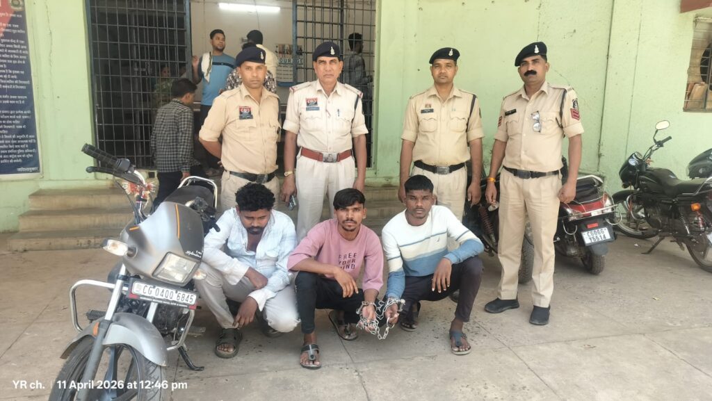 हत्या के बाद आरोपी मौके से फरार हो गए थे और गरियाबंद क्षेत्र में छिपे हुए थे। लगातार दबिश और तकनीकी जांच के आधार पर पुलिस ने तीनों आरोपियों को पकड़ लिया। घटना में प्रयुक्त स्प्लेंडर मोटरसाइकिल (सीजी 04 क्यू क्यू 6845) भी जब्त कर ली गई है।