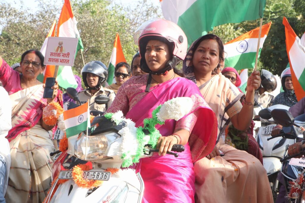 सूरजपुर/14 अप्रैल 2026/ “नारी शक्ति वंदन अधिनियम” के समर्थन में और महिलाओं के सम्मान व देश निर्माण में उनकी भागीदारी को सशक्त करने के उद्देश्य से जिले में भव्य नारी शक्ति वंदन कार्यक्रम का आयोजन किया गया। कार्यक्रम के तहत राज्य की महिला एवं बाल विकास मंत्री श्रीमती लक्ष्मी रजवाड़े के नेतृत्व में महंगवा चौक सूरजपुर से शिवपार्क सूरजपुर तक विशाल महिला स्कूटी रैली निकाली गई, जिसमें हजारों महिलाओं ने उत्साहपूर्वक भाग लेकर पूरे शहर को नारी शक्ति के जोश और संकल्प से सराबोर कर दिया।