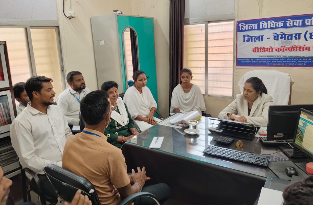 बेमेतरा 15 अप्रैल 2026/- जिला विधिक सेवा प्राधिकरण, बेमेतरा द्वारा आगामी नेशनल लोक अदालत 09 मई 2026 के सफल आयोजन एवं अधिक से अधिक प्रकरणों के निराकरण के उद्देश्य से व्यापक प्रचार-प्रसार किए जाने के संबंध में बैठक आयोजित की गई। बैठक का आयोजन श्रीमती सरोज नंद दास, प्रधान जिला न्यायाधीश/अध्यक्ष, जिला विधिक सेवा प्राधिकरण, बेमेतरा के मार्गदर्शन में एवं श्रीमती स्वर्णप्रभा यादव, सचिव, जिला विधिक सेवा प्राधिकरण, बेमेतरा की उपस्थिति में किया गया।