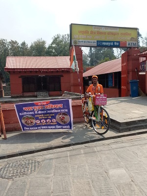 कलेक्टर अबिनाश मिश्रा की प्रेरणा एवं समाज कल्याण विभाग के मार्गदर्शन में तुलसीराम साहू 27 मार्च को साइकिल से नेपाल स्थित राधा स्वामी सत्संग व्यास डेरा के लिए रवाना हुए थे। करीब 20 दिनों की सतत यात्रा के बाद वे सफलतापूर्वक नेपाल पहुंच चुके हैं। अपनी इस यात्रा के दौरान उन्होंने विभिन्न स्थानों पर लोगों को नशे के दुष्प्रभावों के प्रति जागरूक किया और युवाओं को स्वस्थ एवं सकारात्मक जीवन शैली अपनाने का संदेश दिया।