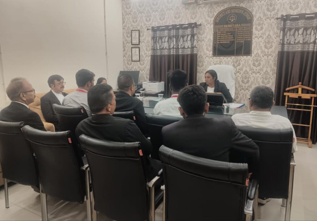 बेमेतरा 20 अप्रैल 2026/- राज्य विधिक सेवा प्राधिकरण बिलासपुर के आदेशानुसार, श्रीमती सरोज नंद दास, प्रधान जिला न्यायाधीश/अध्यक्ष, जिला विधिक सेवा प्राधिकरण, बेमेतरा की अध्यक्षता में एवं देवेन्द्र कुमार, प्रथम जिला एवं अपर सत्र न्यायाधीश, श्रीमती स्वर्णलता ओम यादव, सचिव, जिला विधिक सेवा प्राधिकरण, बेमेतरा उपस्थिति में आर्बिट्रेशन, क्लेम/बीमा कंपनी के अधिवक्तागण एवं बैंक/फाइनेंस कंपनी के अधिकारीगण के साथ आगामी नेशनल लोक अदालत के संबंध में बैठक आयोजित किया गया। उक्त बैठक में अध्यक्ष द्वारा आर्बिट्रेशन, क्लेम/बीमा कंपनी के लंबित प्रकरणों में पक्षकारों से प्री-सिटिंग कर आपसी सुलह एवं समझौते से अधिक से अधिक प्रकरणों का निराकरण किये जाने के संबंध में चर्चा किया गया। बैंक/फाइनेंस कंपनी के अधिकारीगण को अधिक से अधिक प्री-लिटिगेशन प्रकरणों के निराकरण के लिए उनके समय सीमा पर प्रस्तुतिकरण पंजीयन, नोटिस तामिली एवं उनके साथ सौहाद्रपूर्ण रूप से राजीनामा करने पर चर्चा की गई। उक्त बैठक में आर्बिट्रेशन, क्लेम/बीमा कंपनी के अधिवक्तागण, लीड बैंक, अन्य प्राइवेट बैंक एवं फाइनेंस कंपनी के अधिकारीगण उपस्थित रहे।