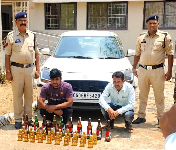 कार में अवैध शराब परिवहन: दो आरोपी गिरफ्तार, 5900 रुपए की शराब जब्त