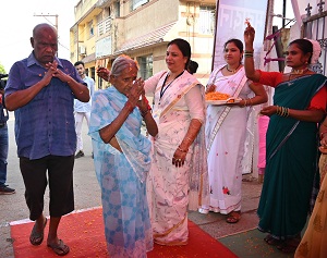 आदर्श मतदान केन्द्रों में मतदाताओं को तिलक लगाकर एवं फूल बरसाकर किया स्वागत