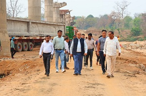 बीजापुर। भैरमगढ़ से 5 किमी दूर फुंडरी पंचायत के इंद्रावती नदी पर उच्च स्तरीय पुल का निर्माण किया जा रहा है जिससे नदी के उस पार बसे बीजापुर के 12 पंचायत के ग्रामीणों के साथ नारायणपुर के माड़ क्षेत्र ओरछा के लोगों को आवागमन में सुविधा होगी। सोमवार को कलेक्टर अनुराग पाण्डेय एवं एसडीएम जागेश्वर कौशल ने पुल निर्माण का निरीक्षण किया कलेक्टर की उपस्थिति में पूर्ण निर्मित पिलर के ऊपर गर्डर चढ़ाने का काम शुरू किया गया। सब इंजीनियर एस आर दुग्गे ने बताया की फुंडरी पुल की लम्बाई 648 मीटर है जिसमें 42 गर्डर लॉचिंग होना है। कलेक्टर अनुराग पाण्डेय ने निर्माण कार्य में तेजी लाने का निर्देश दिया साथ ही ग्रामीणों से बुनियादी सुविधाओं के बारे में चर्चा भी किया।