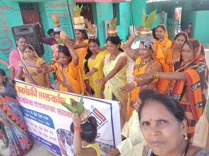 ग्रामीण स्तर पर शत प्रतिशत मतदान हेतु महिलाएं लोगों को कर रही प्रेरित