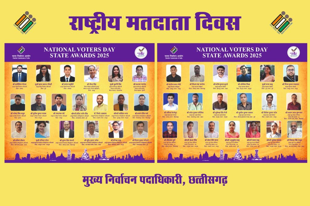 Chief Electoral Officer Smt. Reena Babasaheb Kangale informed that Raigarh Collector Shri Kartikey Goyal will be honored as the Best District Election Officer for conducting the highest 81.66 percent voting in the state in the Lok Sabha election 2024, Durg Collector Sushri Richa Prakash Choudhary for increasing the voting percentage by 2.48 percent in the Lok Sabha election in 2024 compared to the previous Lok Sabha election despite being an urban area, Dantewada Collector Shri Mayank Chaturvedi for registering an increase of 10.39 percent in the Lok Sabha election 2024 compared to the previous Lok Sabha election despite being a highly Naxal-affected area. Raipur Collector Shri Gaurav Kumar Singh will be honored for successfully conducting the training of polling parties during the Lok Sabha election 2024, Rajnandgaon District Chief Election Officer Sushri Suruchi Singh for organizing quality sweep activities and Mungeli District Panchayat Chief Executive Officer Shri Prabhakar Pandey will be honored with a special award for sweep activities related to motivating migrant laborers to vote.